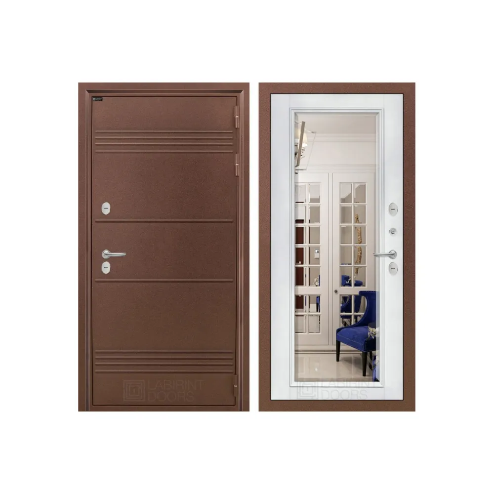 Входная дверь с терморазрывом Лабиринт Термо Лайт с Зеркалом Фацет - Белый софт