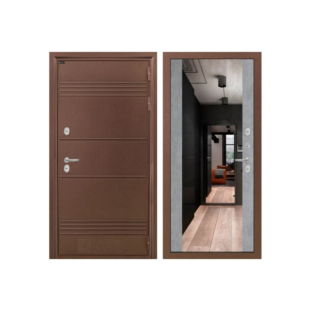 Входная дверь с терморазрывом Лабиринт Термо Лайт с Зеркалом Максимум - Бетон светлый
