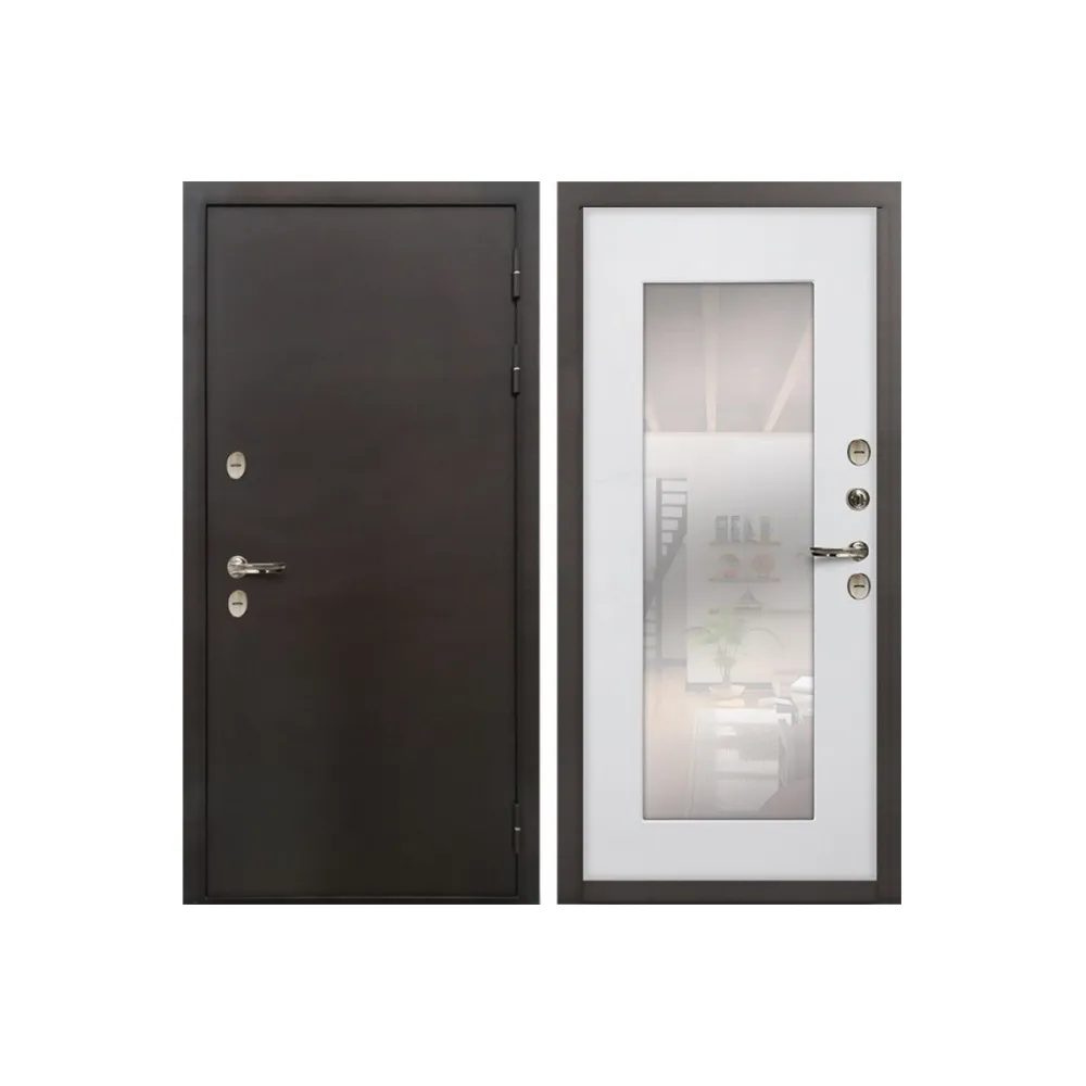 Входная дверь с терморазрывом Лекс Термо Сибирь 3К с Зеркалом Ясень белый (панель №37)