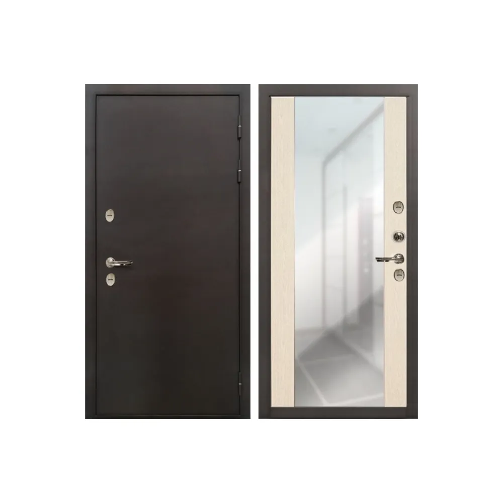 Входная дверь с терморазрывом Лекс Термо Сибирь 3К Стиль Зеркало Беленый дуб (панель №45)
