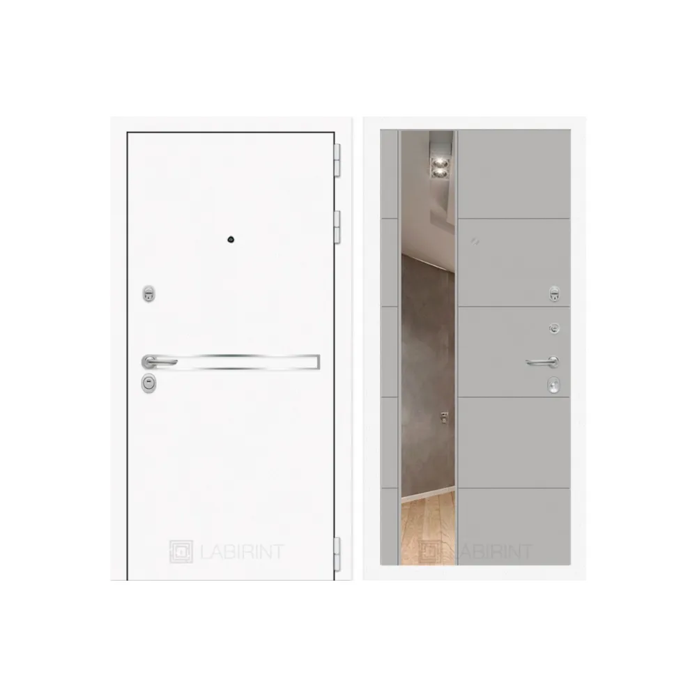Входная зеркальная дверь Labirint Line White с зеркалом 19 Грей Софт
