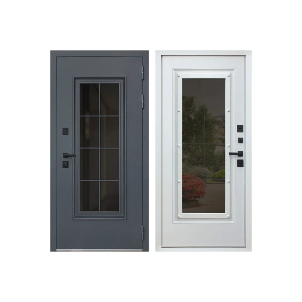 Входная уличная дверь с терморазрывом АСД Titanium 3К с окном и английской решеткой
