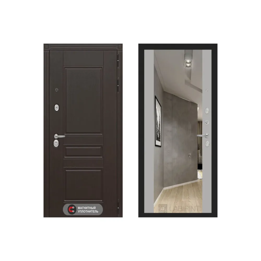 Входная металлическая дверь Labirint Megapolis Макси Софт Грей зеркало