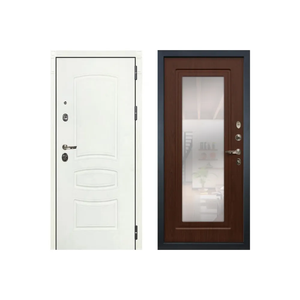 Металлическая дверь Лекс Сенатор Белая с зеркалом береза мореная ( панель №30)