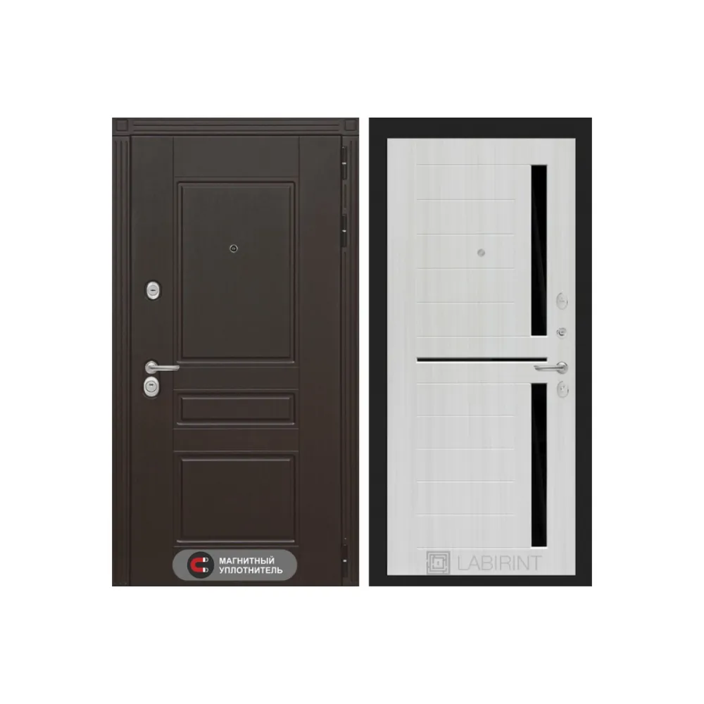 Входная дверь Labirint Мегаполис 02 - Сандал белый, стекло черное
